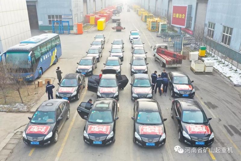 1月12日上午,河南礦山倉庫門前整齊劃一地停放著貼有“送福到家”的車輛。工作人員有條不紊地忙碌著,將禮品分配好、打包裝車,隨后28輛汽車載著10余種禮品依次出廠,分12路前往各位業(yè)務經(jīng)理家中。