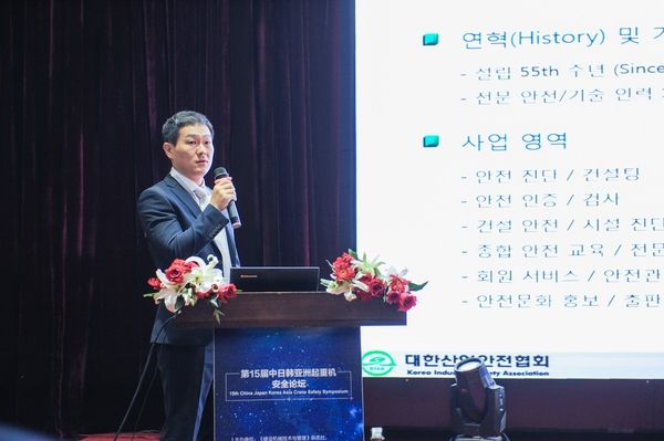 韓國工業(yè)安全協(xié)會金學(xué)仁作《龍門(橋式)起重機的拱度對安全和性能的影響》主題報告