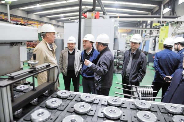 ▲國家市場監(jiān)督管理總局特種設(shè)備局副局長楊澤世、調(diào)研員尚洪等領(lǐng)導(dǎo)蒞廠參觀考察