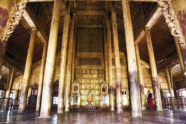 柚木寺是一座傳統(tǒng)的緬式柚木建筑,整幢建筑物就是一件大型的木雕藝術(shù)品,雕刻精美而華麗,整個建筑***初都涂滿金漆,因此被稱為“金色宮殿”,值得一提的是,大殿里面靠近佛像的區(qū)域只有男性可以進入,女性是禁止入內(nèi)的。