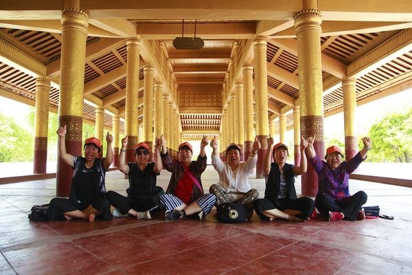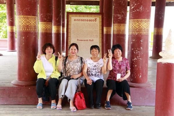參觀完固都陶佛塔,爸爸媽媽們來到了貢榜王朝敏東王和王后的寢宮——金色宮殿柚木寺,這也是曼德勒***保存至今的皇宮主體建筑。