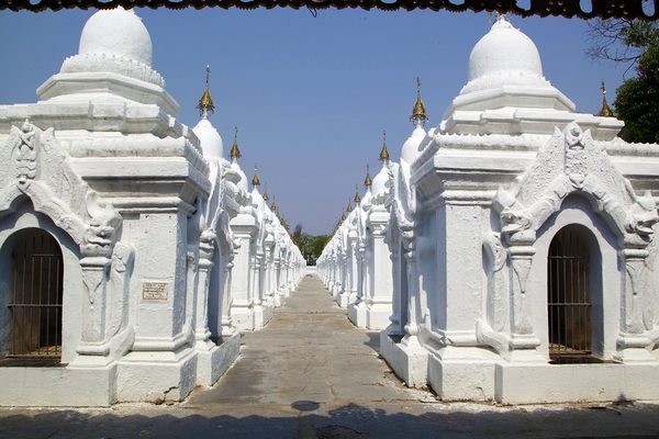 中央高聳的佛塔,四周有729塊緬甸大理石碑林相圍。