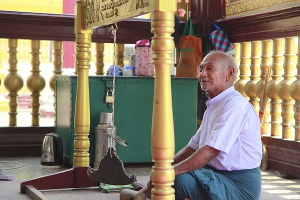 早晨的曼德勒安靜而祥和,時不時從佛寺中傳來幾聲低沉而悠長的鐘聲。